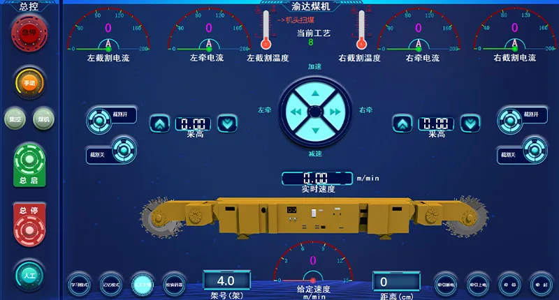 Интерфейс дисплея интеллектуальной угледобывающей машины выглядит следующим образом: